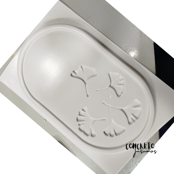 Molde de plástico termoformado para hacer una bandeja oval con bajorrelieve de flores de Ginko