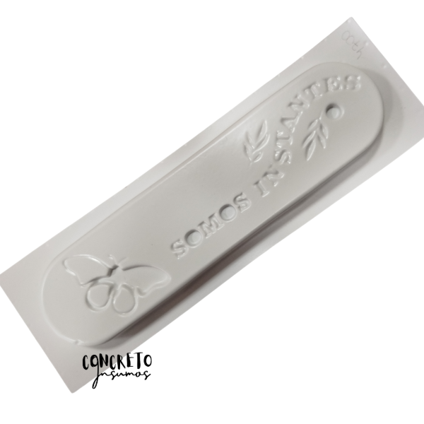 Molde de plástico termoformado para hacer PORTASAHUMERIO con bajorrelieve mariposa y frase "somos instantes"