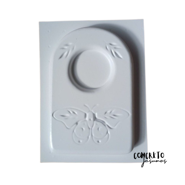 Molde de plástico termoformado para hacer un porta velas con bajorrelieve de mariposa