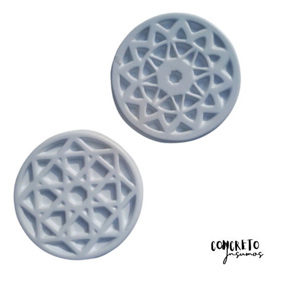 Molde de plástico termoformado para hacer posavasos con bajorrelieve de mandalas.